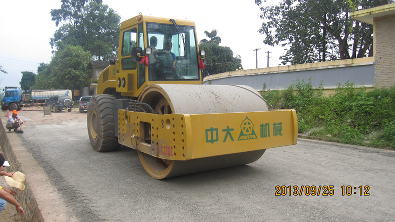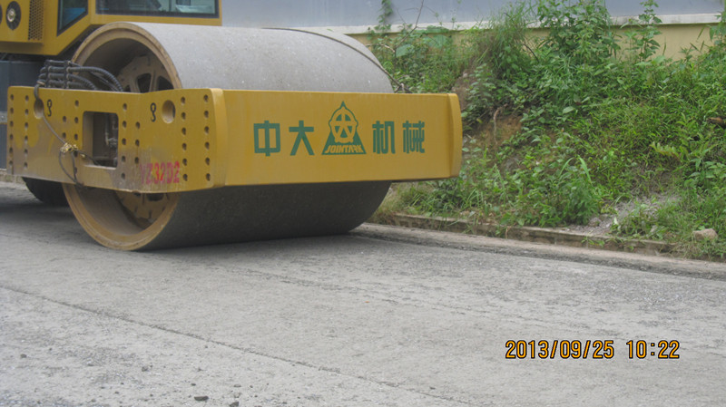 國道320云南德宏州芒瑞段改造工程,水穩(wěn)施工采用大厚度施工工藝,將原來的分層施工工藝創(chuàng)新為大厚度單層施工工藝(兩層并作一層施工),采用YZ32超重噸位超大激振力全液壓自行式單鋼輪振動壓路機進行碾壓,松鋪厚度達到53CM,僅碾壓三遍,壓實度達到103,平整度、壓實度和整體強度達到并超過高速公路施工規(guī)范要求,在不增加任何成本的前提下大大的提高了道路的施工質(zhì)量和施工進度。