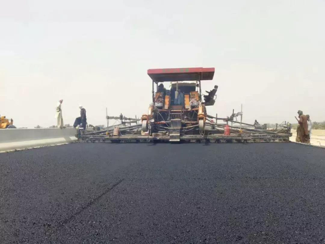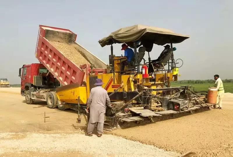 云南陽光道橋購買的中大DT1600抗離析攤鋪機,十年無大修!在巴基斯坦PKM路面二分部瀝清中面層攤鋪順暢進行中!